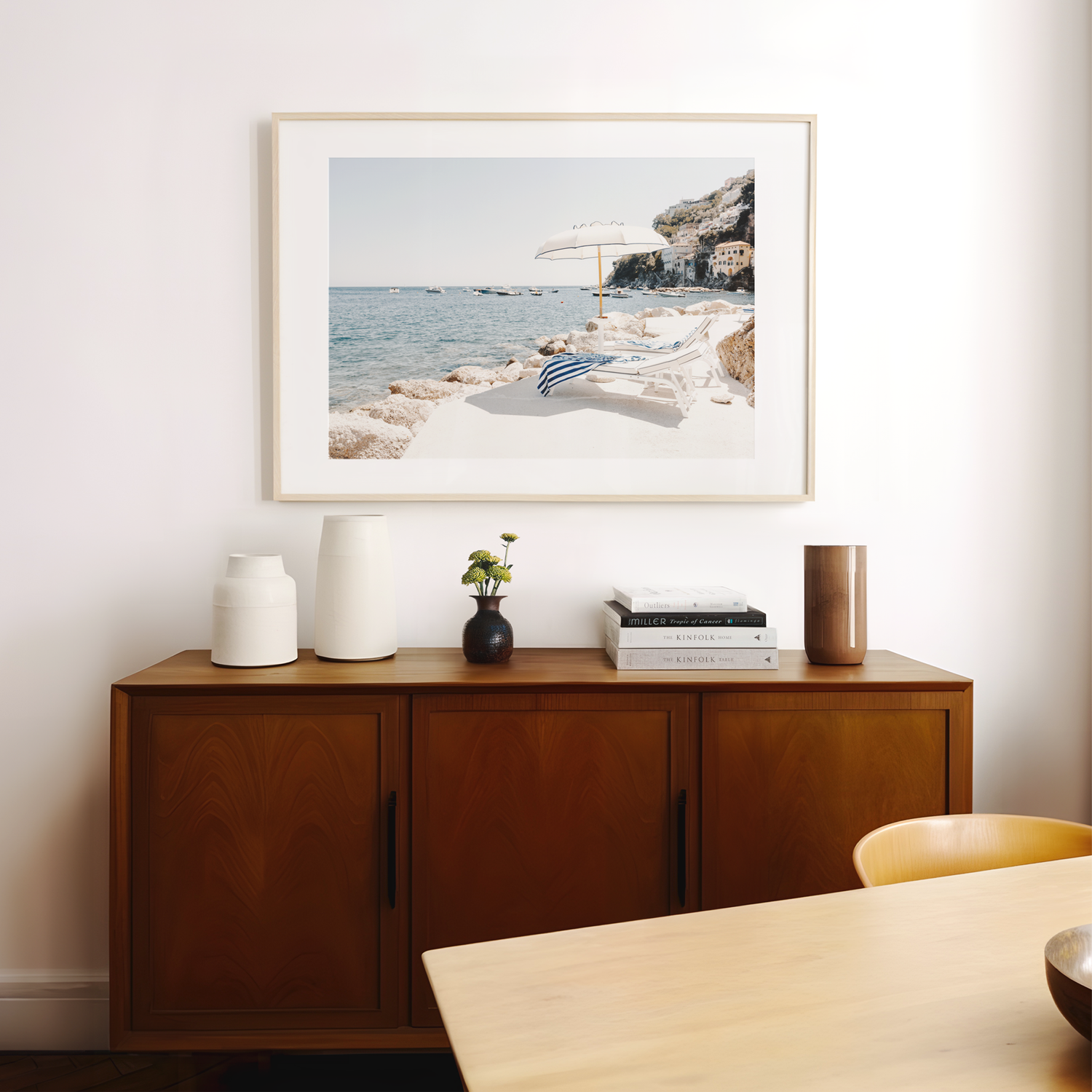This coastal wall art embodies the essence of Mediterranean leisure, where salt air, soft light, and slow mornings meet timeless sophistication. Perfect for brightening a modern home, beach house, or studio space with the refined ease of an Italian summer.