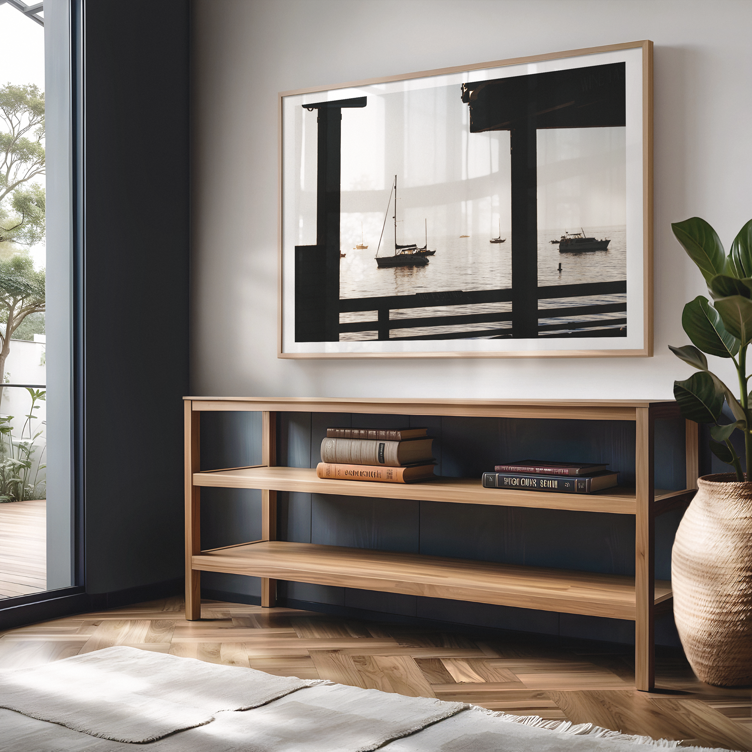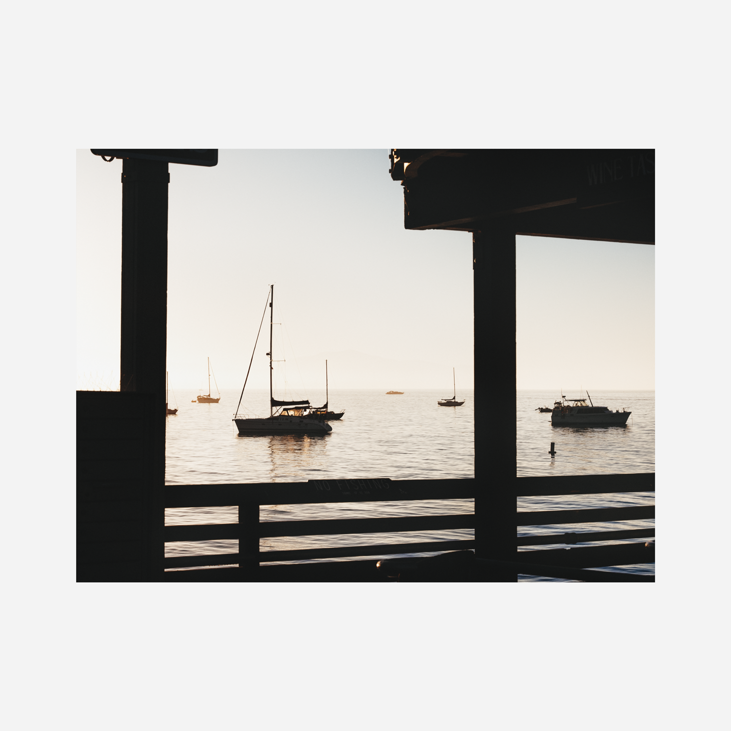 Golden light settles over Santa Barbara’s harbor as sailboats drift in formation, framed by the pier’s quiet geometry. This fine art coastal photograph captures the warmth of California’s golden hour, a timeless moment of calm and reflection, perfect for elevating modern or coastal interiors.