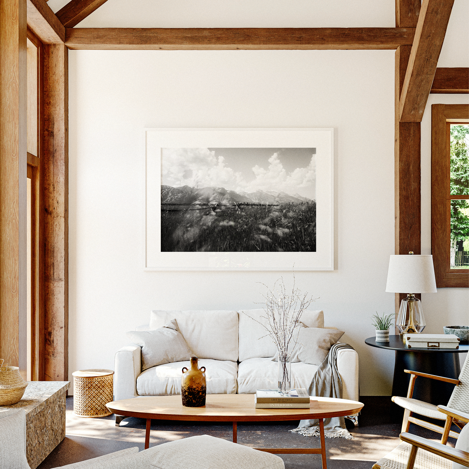 Printed on museum-quality archival paper and framed with precision, Jackson Summer brings a sense of stillness and reflection to any space. It serves as a timeless centerpiece for both modern homes and rustic mountain interiors.