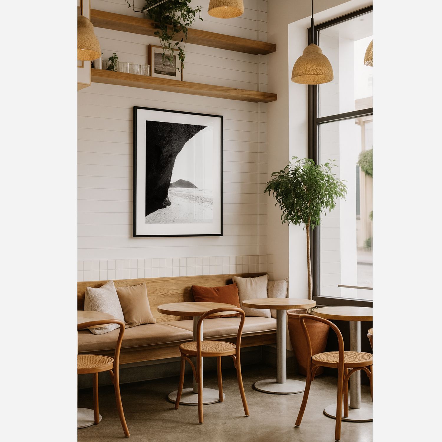 Captured along the Tasman Sea west of Cape Farewell, this fine art photograph showcases one of the most remote and pristine beaches on New Zealand’s South Island. Accessible only by a 21-minute walking track, the north-facing coastline feels untouched and expansive, with soft sand, dramatic rock formations, and bright, open light. A perfect piece for those who love adventure, coastal minimalism, and modern travel-inspired interiors.