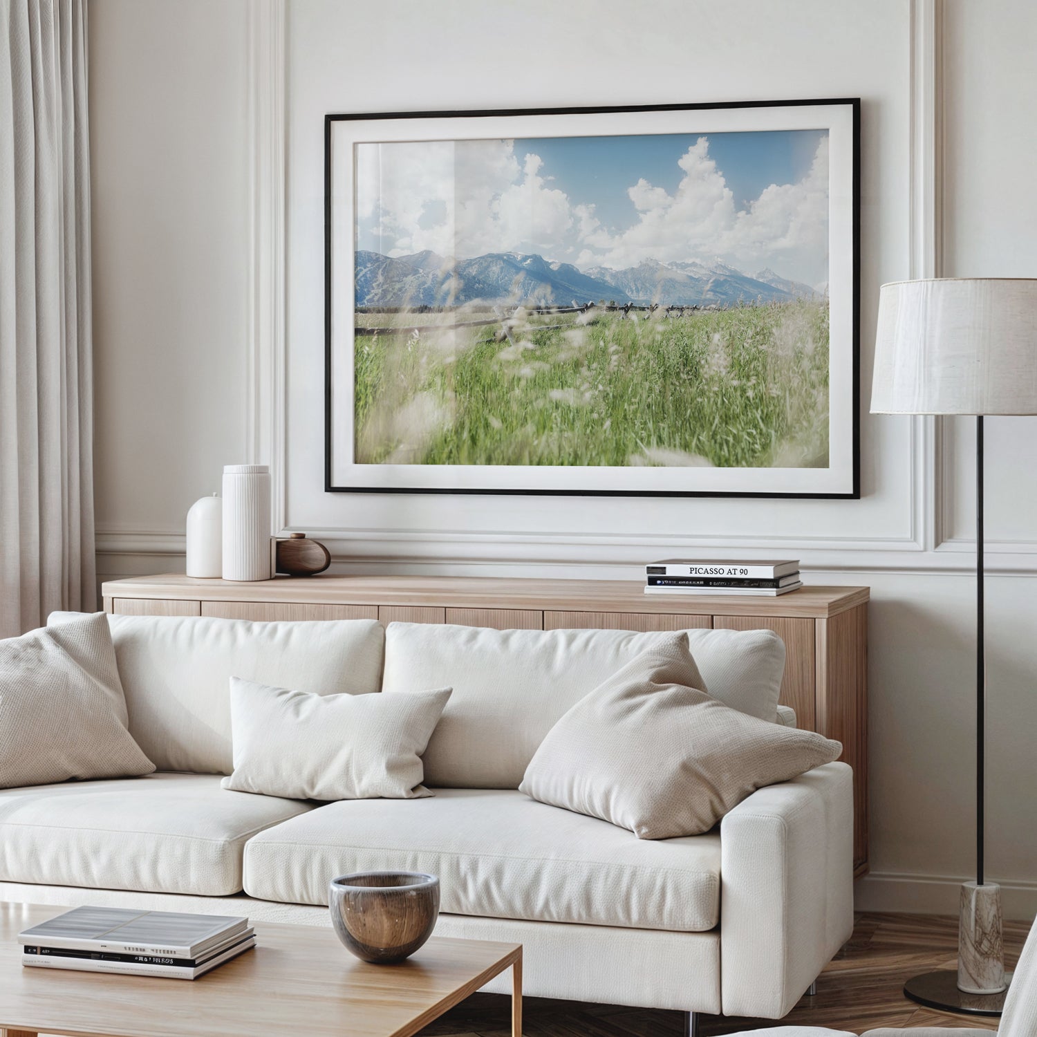 Perfect for lovers of western landscapes, mountain homes, and high-end rustic interior design, this print adds a sense of calm, heritage, and wide-open Wyoming air to any space.